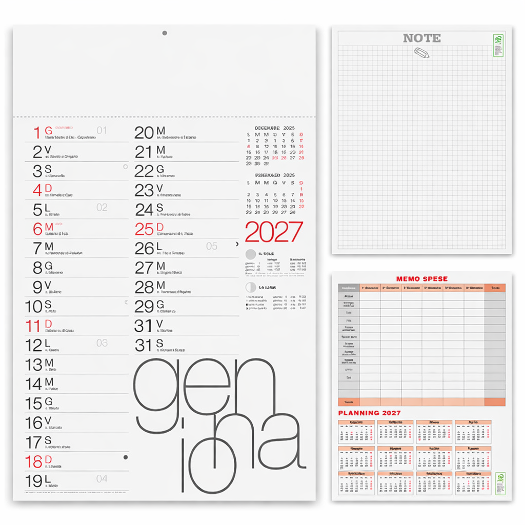 | Dimensioni | calendario: cm 30x47 ca testata: cm 30x9 ca |