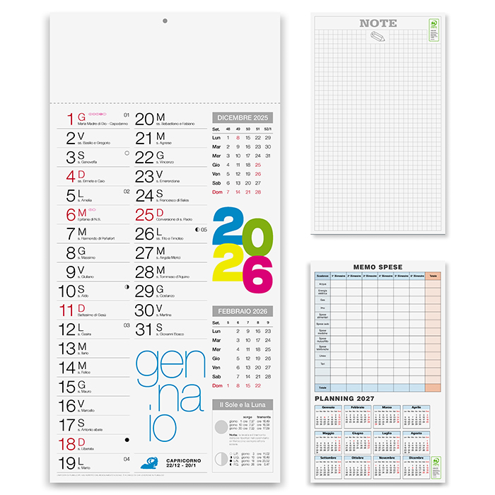 | Dimensioni | calendario: cm 23x47 ca testata: cm 23x9 ca |
