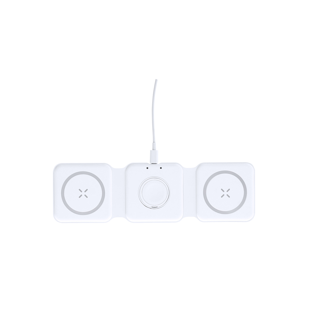 Il Caricatore Tardim è un innovativo caricatore wireless magnetico da 15W, progettato per ricaricare simultaneamente smartphone, auricolari e smartwatch. Questo gadget tutto-in-uno è pieghevole, portatile e compatto, rendendolo ideale per l'uso quotidiano e i viaggi. Realizzato in resistente ABS bianco e conforme agli standard RoHS, il caricatore garantisce sicurezza grazie a sistemi di protezione contro il surriscaldamento, sovraccarico e cortocircuiti. Include un cavo USB Tipo C per un utilizzo immediato. Ricarica i tuoi dispositivi in modo semplice e veloce con il Caricatore Tardim.